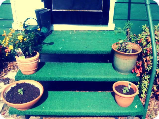 The last part of this little post is about my summer garden! I helped out at the World Hunger Relief Farm yesterday for their spring Farm Day fest, and while there I picked up some tomato and basil seedlings! I adore Caprese salad, and now I'm happily "growing my own" on the back stoop! (and some wildflowers to set on my table as I eat said salad.) Hope it lives!